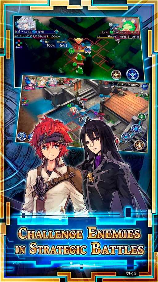 Тактическая игра на высоком качестве ожидает пользователей. Увлекательный мир японского аниме подарит только удовольствие пользователям и море приятных ощущений. Классно смотрится качественная объемная графика в THE ALCHEMIST CODE, сделанная с использованием самых последних технологий. Овладейте магией и постепенно изменяйте этот мир.Особенности: