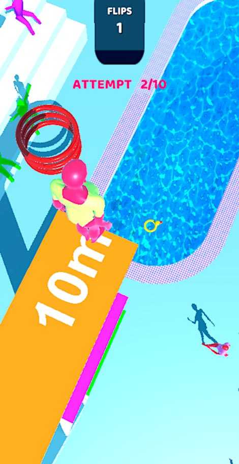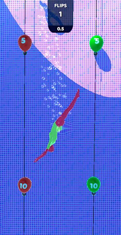 В Purple Diver есть множество различных задач, включая достичь определенной глубины или дна бассейна, попасть в резиновую утку, пролететь сквозь кольцо, сделать определенное количество оборотов и т.д. Также вам будут встречаться уровни с несколькими заданиями сразу.