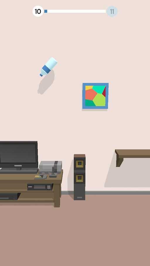 Затягивающий игровой процесс с легким геймплеем и понятным управлением. Вам просто нужно будет щелчком бросать бутылку и прыгать по разным комнатам. Используйте любые предметы в комнате Bottle Flip 3D и задействуйте обстановку. Полки, диваны и многое другие. Главное правильно изучать расстояние и рассчитать дистанцию.