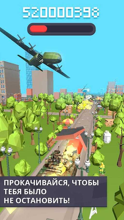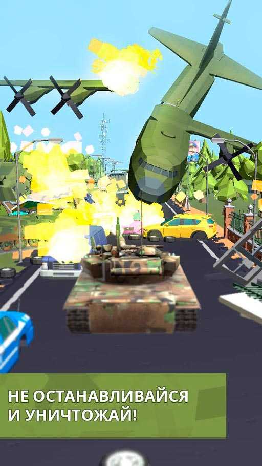 Все что тебе нужно будет делать, это стрелять и разрушать окружающую обстановку. Не жалей никаких построек и препятствий, просто сноси это ради достижения своих целей. За каждый выстрел и разрушение бонусом будут начисляться очки. Естественно не обойдется без соперников, другие танкисты постоянно совершают нападение и от них нужно отбиваться. Tank Smash: Игра про танки действует по принципу кликера и не вызовет сложности у пользователей.Особенности: