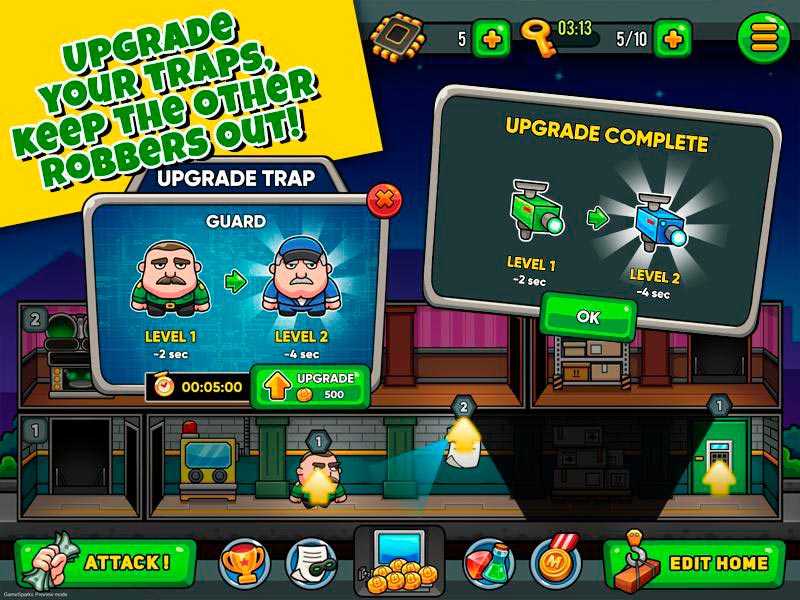 Теперь игроку предстоит испытать новые ощущения и пройти приключения в новых локациях. Классические действия Bob The Robber: League of Robbers понравится старым поклонникам этой серии про Боба. Теперь здесь присутствует многопользовательский режим, в котором можно соревноваться с друзьями ПвП. Раньше таких возможностей у пользователей не было никогда.