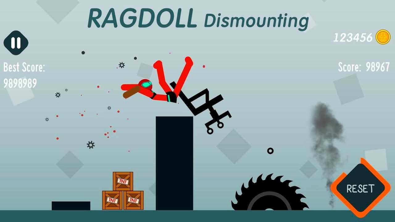 Просто нажмите на экран и удерживайте, после чего нереальное транспортное средство отправиться на безумную трассу. На ней полно расставленных ловушек, способных уничтожить Стикмена, что выглядит весьма интересно. Можете врезаться в преграды, пройдите опасную пилу и еще куча всего интересного ждет впереди. Ragdoll Dismounting подарит удовольствие от доступного сумасшествия.