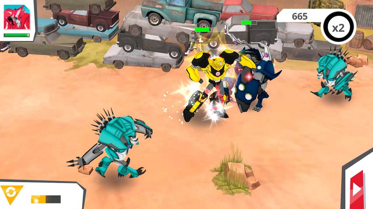 Десиптиконы снова наступают и вам нужно защититься от них любыми способами. Участвуйте в масштабных схватках и выбирайте своего любимого робота, чтобы собрать Эрегон. В Transformers: RobotsInDisguise присутствует несколько интересных режимов. Например, можно сражаться командами, пройти интересный и захватывающий сюжет или даже участвовать в событиях. Трансформируйте в любой момент в автомобиль или обратно в робота. Здесь полно возможностей для веселья.