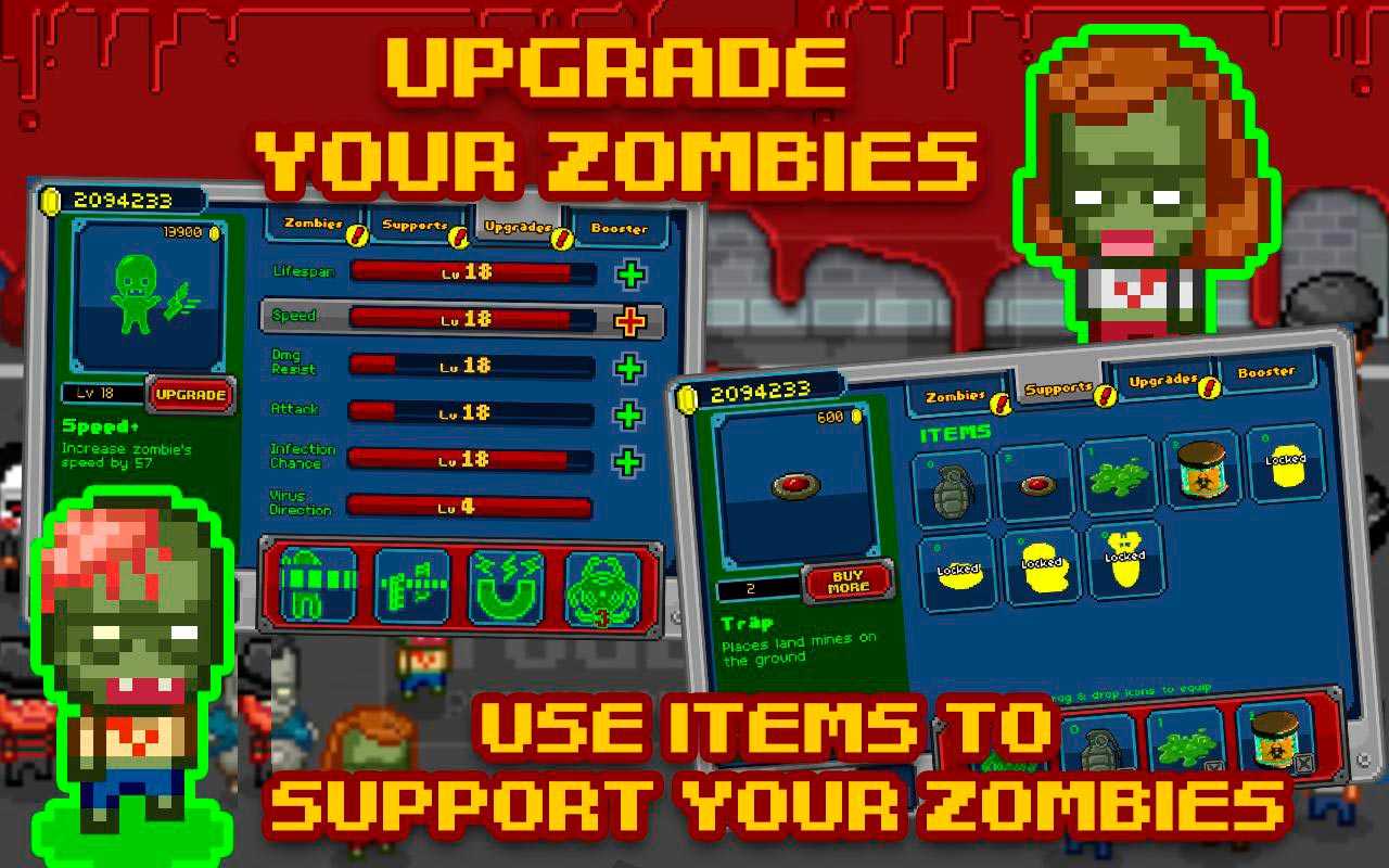 Уже миллионы пользователей заразились этой увлекательной и опасной игрой. Вы тоже должны попробовать в нее поиграть, она обрела свою известность еще будучи в стиле флэш-игр. Множество персонажей задействовано в Infectonator и все они сильно отличаются. Классическая ретро графика понравится поклонникам. Заражайте как можно больше людей и пополняйте ряды восставших мертвецов.Особенности: