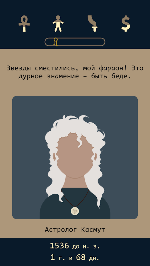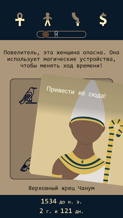 В этой игре главному герою предстоит оказаться в Египте времен 1750-х. В это время страна хранила много тайн и загадок, которые не под силу объяснить нынешнему человеку. Благодаря вашему участию в эту эпоху, можно пройти путь от самого фараона и попытаться изменить будущее страны. В текстовой игре собрано множество разных вопросов и задач, с которыми пользователям необходимо будет справиться.