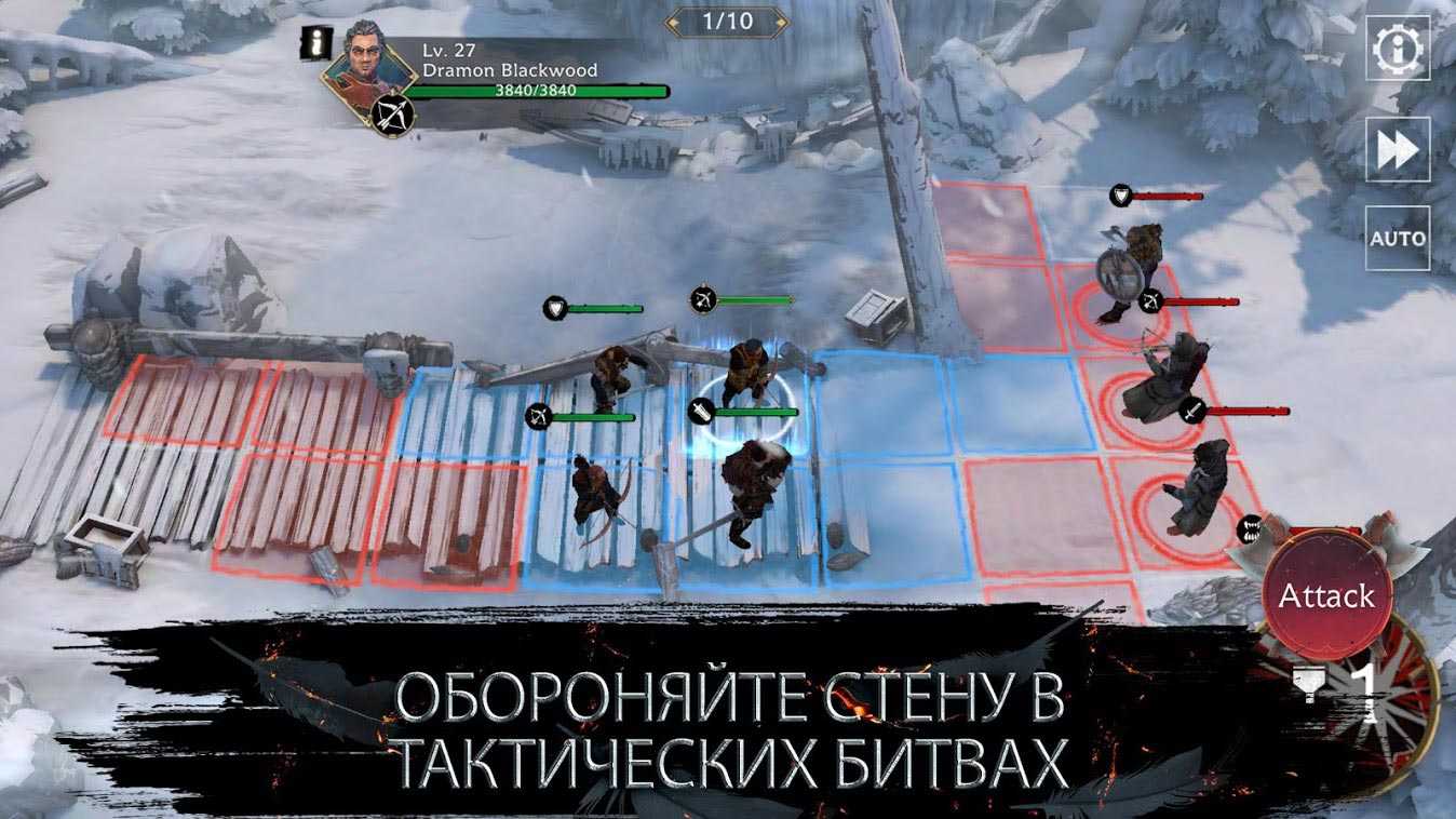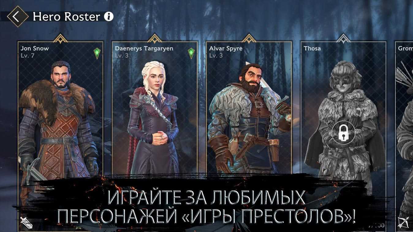 Защищайте ваши владения от одичалых, пополняйте войска новыми рекрутами и собирайте любимых персонажей сериала. Знакомьтесь с новыми героями и их историями, ищите ценные артефакты и улучшайте свою армию. Используйте эпические заклинания и тактические уловки, чтобы победить самых сильных противников.
