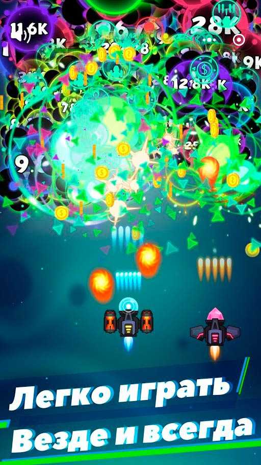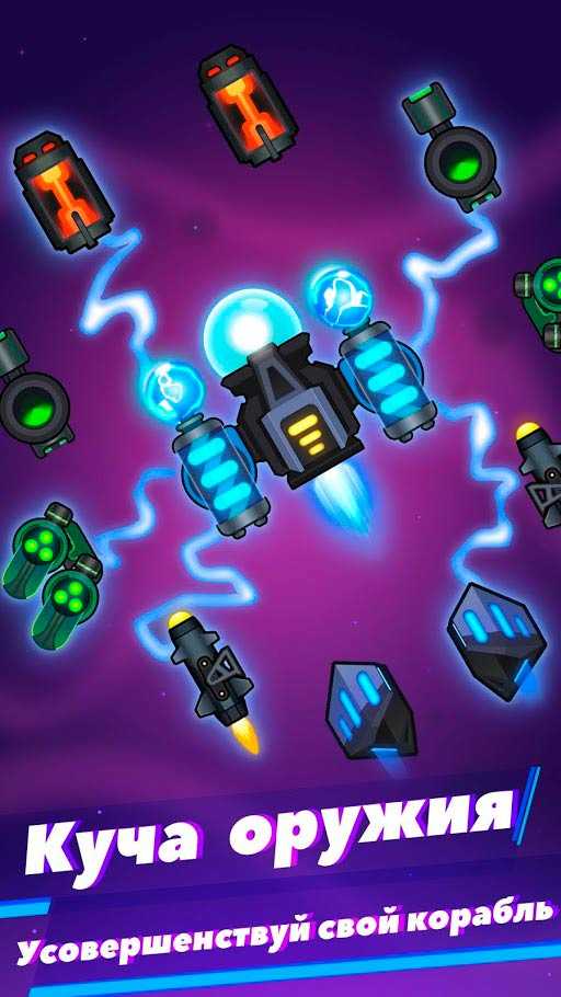Игра радует простым в освоении и удобным управлением, когда все действия можно производить простыми касаниями экрана. Также вы сможете улучшать свой корабль и устанавливать на него разные виды оружия. Найдите самое мощное вооружение и ставьте впечатляющие рекорды, обходя в рейтинге всех ваших друзей.