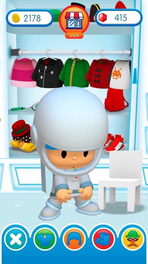 Выбирайте самостоятельно красивые и оригинальные наряды для Покойо и воспользуйтесь тематическими костюмами. Например, он может стать космонавтом, военным или маго. Практически любые ваши желание по тематическим разделам можно будет осуществить с помощью этого веселого приложения. Всего здесь собрано больше сотни уникальных видов украшений и нарядов, которые можно использовать на малыше. Вместе с ним проходите игры и получайте от них удовольствие. Вы сможете исследовать огромное количество мест по крупному дому. Обучайтесь играть на разных музыкальных инструментах и проходите кучу увлекательных уровней.Информация об игре