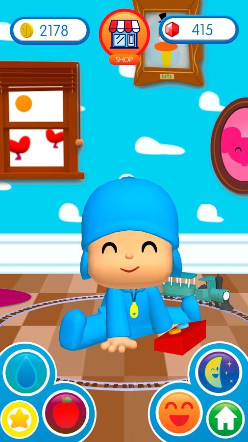 Когда сможете скачать Talking Pocoyo 2 на андроид, приготовьтесь уделять очень много времени этого забавному персонажу, потому что много он сам делать не сможет. Обеспечьте его постоянным уходом и обслуживанием. Старайтесь вовремя кормить персонажа, чтобы он никогда не чувствовал голода. На ночь его обязательно нужно будет помыть или искупать, а уже после этого прочитать красивую успокаивающую колыбельную, которая положит малыша спать. Все эти действия нужно будет проводить ежедневно и таким образом совершенствовать малыша, ну и, конечно же, веселиться.Веселый малыш Покойо