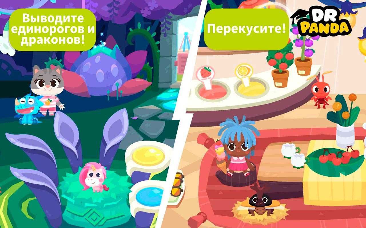 Вы сможете ухаживать за милыми животными и даже выращивать особых питомцев – драконов и единорогов. Развеселите ваших подопечных с помощью аттракционов или дайте им отдохнуть в специальном отеле. Одевайте персонажей в красивые наряды и отправляйте в ветеринарную клинику, если они заболели.