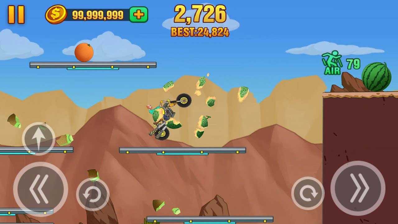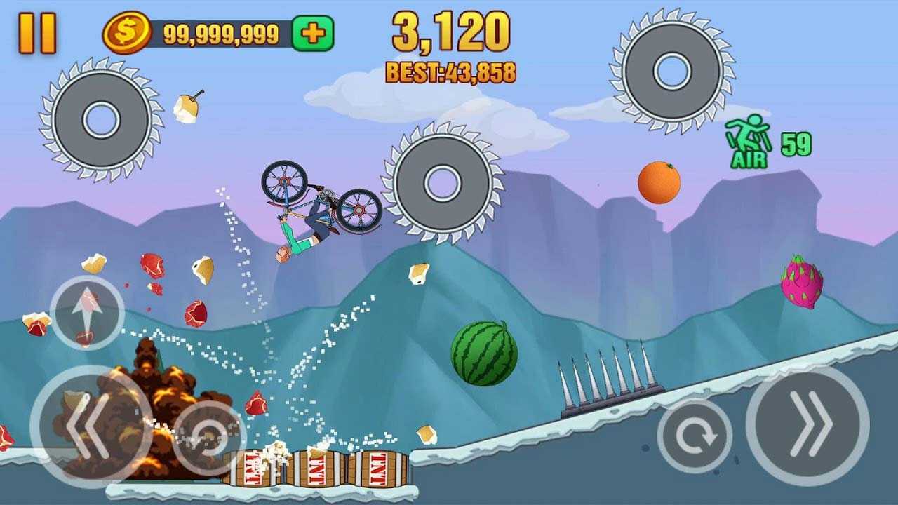 Прохождение каждого уровня дает вам бонусные монеты, которые можно потратить на апгрейд вашего средства передвижения или покупку нового. Катайтесь на велосипеде, тележке для покупок или грузовике, выполняйте головокружительные трюки и выбирайте разные положения водителя, чтобы гонка проходила еще веселее.