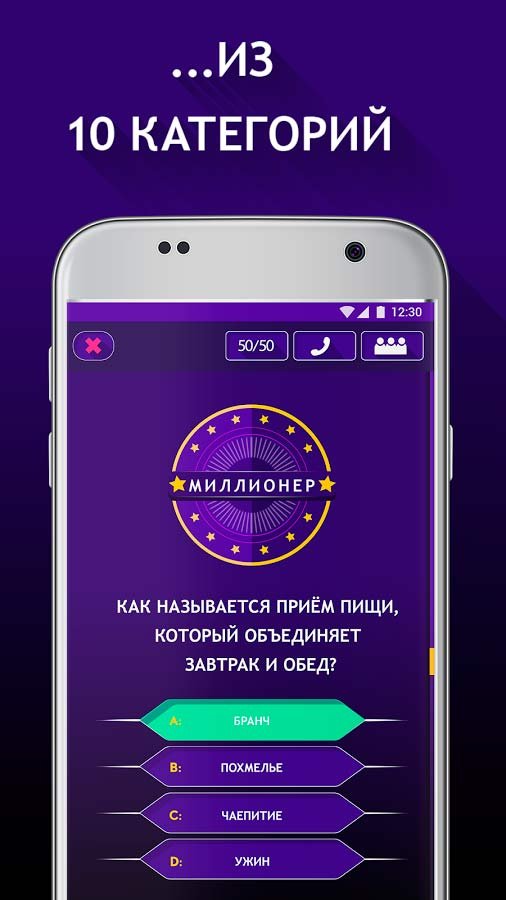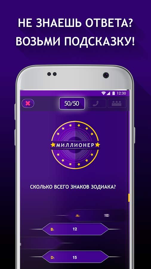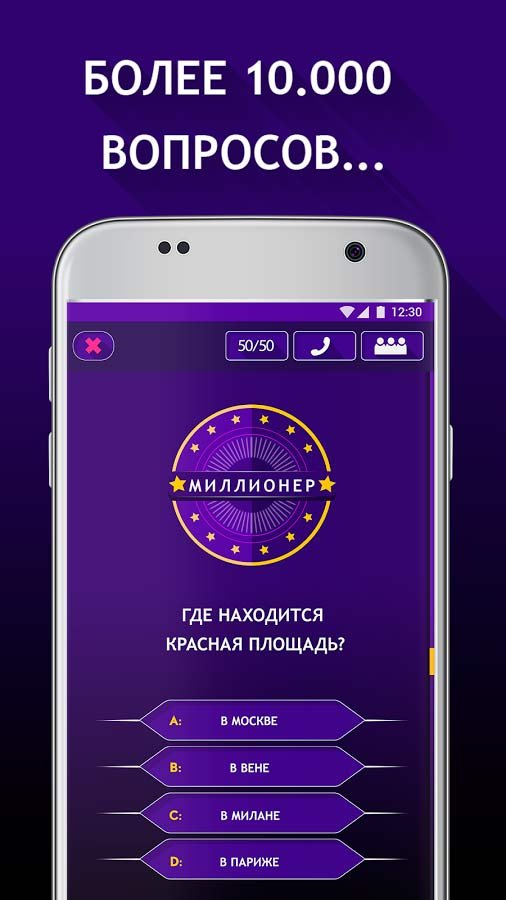 Скачать Миллионер 2019 на андроид можно в любом возрасте и попробовать пройти все вопросы и задания. Старайтесь думать за отведенное на вопрос время и давать только правильные ответы и тогда будете с каждым разом все ближе к финальной части. Здесь вас ждет неизмеримое количество вопросов, которые распределены по разнообразным категориям и тематическим разделам. Почувствуйте все удобства и красоту нового уникального дизайна игрового приложения с простым управлением. Вы можете прямо сейчас стать участником самого популярного телевизионного шоу, чтобы проверить свой интеллект. Станьте главным призером шоу кто хочет стать миллионером, и добивайтесь успеха.Участие в популярном телешоу