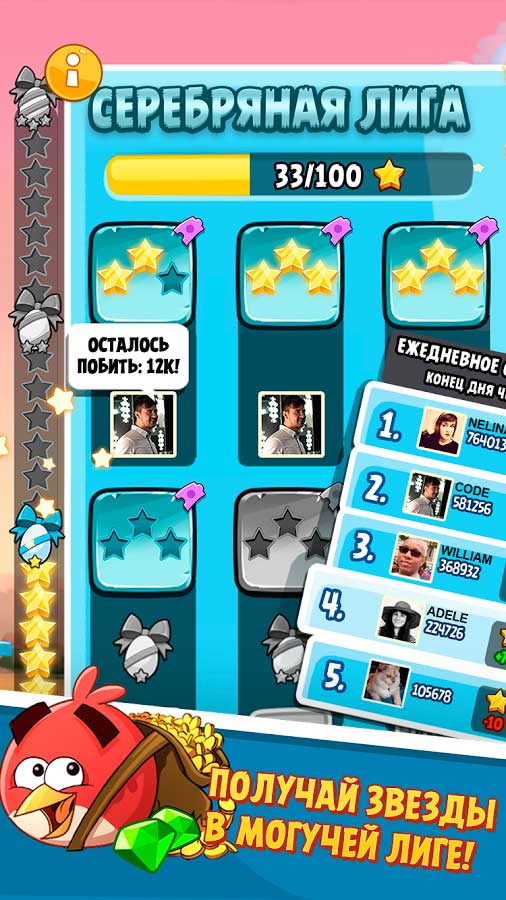 Если не получается справиться с заданием, можно обратиться за помощью к смелому орлу. Его нужно будет приобрести всего лишь раз и после этого можно прибегать к помощи постоянно. Большой птице удастся показать свою могущественную силу свиньям. Интересно, существует ли какой-то подвох? Орел может помогать игрокам только раз в час, ведь у него для этого имеются свои цели. В обновленной версии приложении имеется также некоторые усиления. Можно сделать птиц намного смелее и увереннее в себе и справиться с поставленными заданиями на отлично, чтобы открыть в конечном итоге, дополнительный контент.