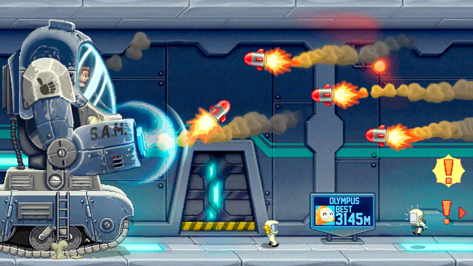 Дело все в том, что благодаря этой вещи у него получилось бы за считанные секунды поменять все в своей жизни. Немного поразмыслив герой похищает ранец, и улетает на нем вперед. В задачу каждого игрока входит - умение лететь, собирая при этом по дороге золотые монеты. Нужно стараться не попадаться на глаза сотрудникам, непосредственным помощникам ученого. Нужно сказать, что управлять игроком очень просто. Все, что Вам нужно будет делать - это нажимать на экран. Когда получится скачать Jetpack Joyride на адроид, игроку удастся увидеть, что в приложении также имеется огромное количество разных рюкзаков и усилений, в число которых входят птицы и дракон, а также большой мощный робот. Когда Вы сможете справиться со всеми поставленными перед вами заданиями, на игровом счете появятся бонусы, с помощью которых можно будет збегать на своем пути трудностей и лазеров, ведь они Вас могут убить.