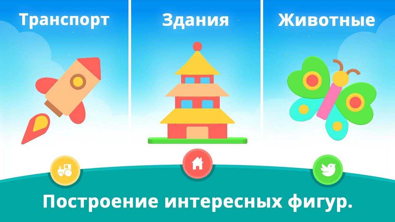 Поначалу игра предлагает довольно простые задачи, но затем количество деталей, из которых состоят собираемые предметы, постепенно увеличивается. Детям от 2 до 5 лет понравится совмещать фигуры по размеру, форме и цвету в этом виртуальном конструкторе.