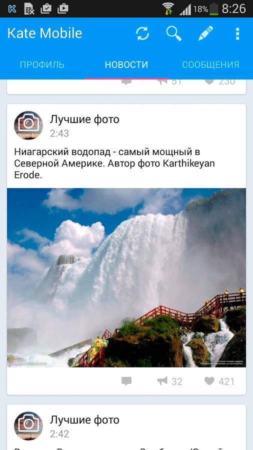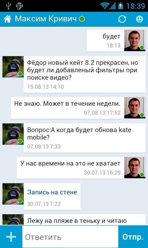Вконтакте уже давным-давно стало популярным приложением современного человека для общения и передачи файлов. Нужно скачать Kate Mobile на адроид, чтобы убедиться в этом. Уже мало осталось тех, кто сидит и общается с компьютера, просматривая при этом новостную ленту, например, в дороге. Постепенно Вконтакте стала появляться на переносных гаджетах, телефонах, планшетах-и это поистине можно считать настоящим прорывом. В наше время появилось огромное количество всевозможных аналогов первого официального приложения, одним из которых можно считать данное приложение.