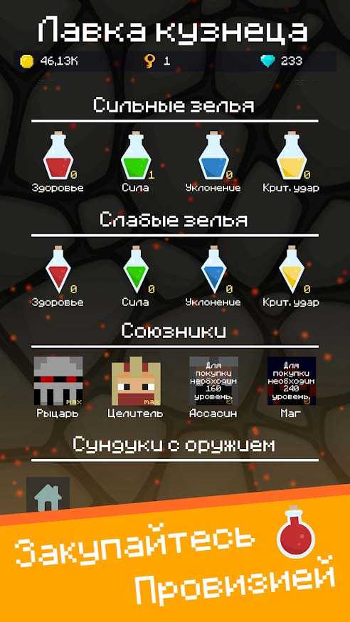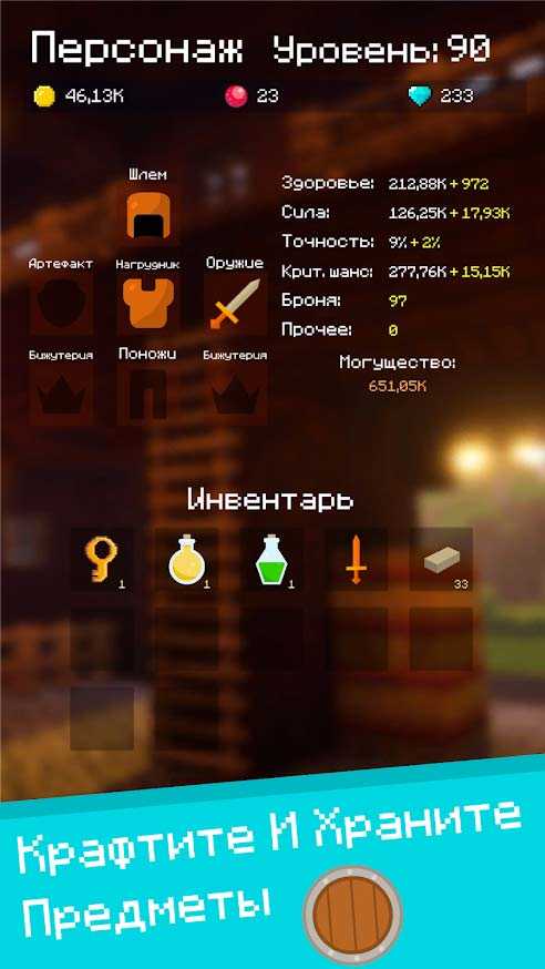 Повышайте уровень своего персонажа, чтобы увеличить его характеристики. Изготавливайте или ищите мощное снаряжение. Изучайте магические способности, которые помогут выйти победителем из самых сложных баталий.