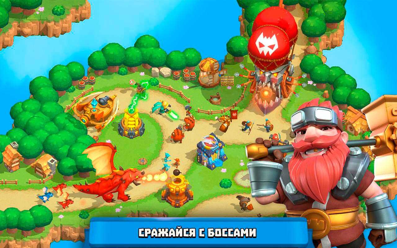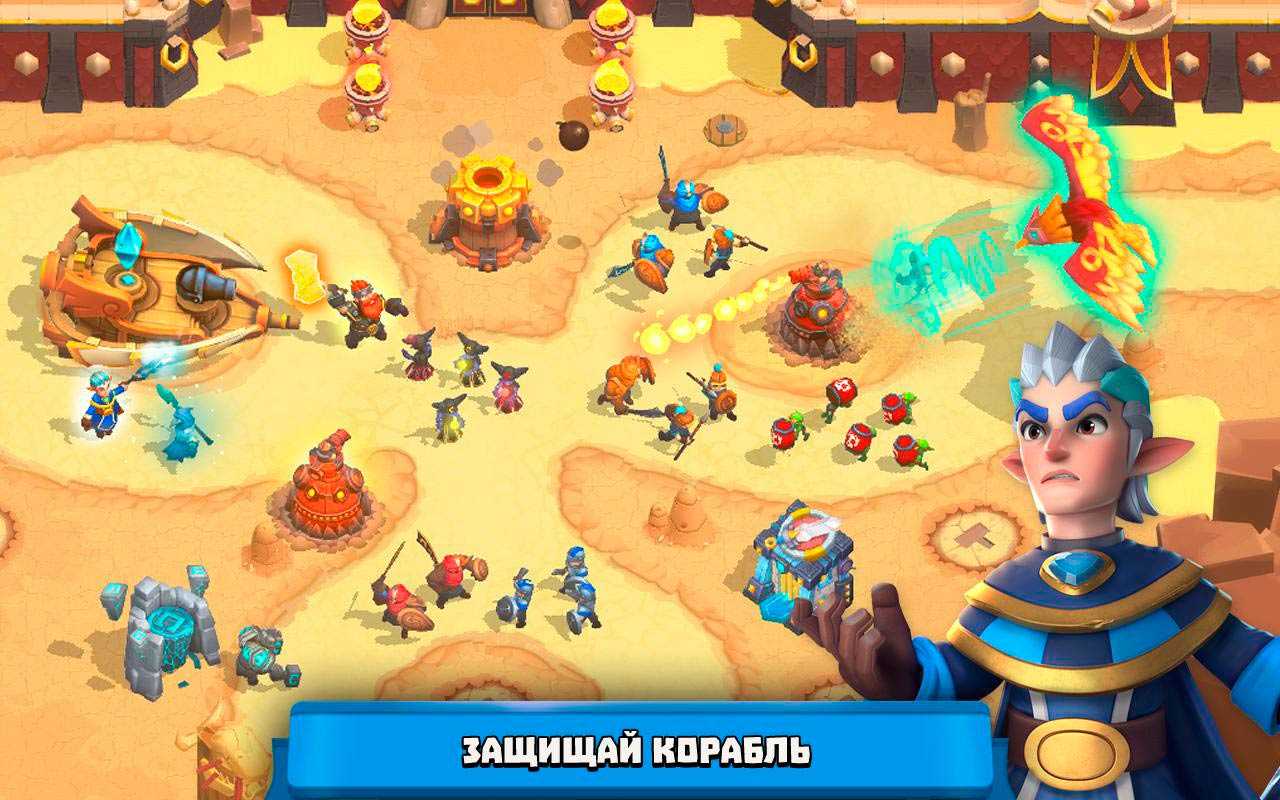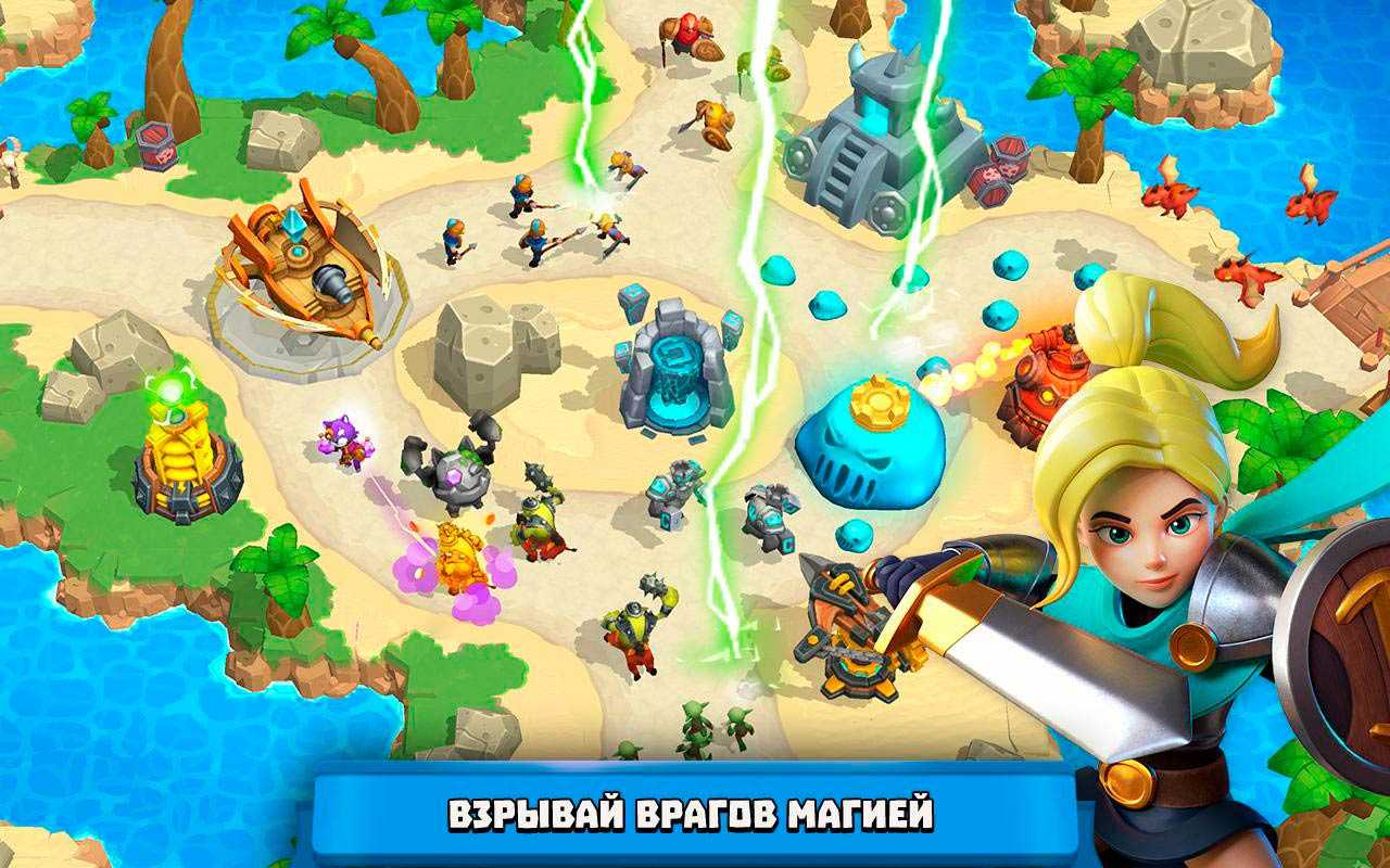 Смесь РПГ с обороной башен понравится пользователям. Игровая графика и атмосфера сделана в сказочном стиле. Здесь всех ожидают встречи с такими персонажами мифов как орками, драконами, эльфами, магами и многими другими. Они попытаются захватить остров, а в ответ герою нужно построить мощную оборону и не позволить разрушить свою мечту.