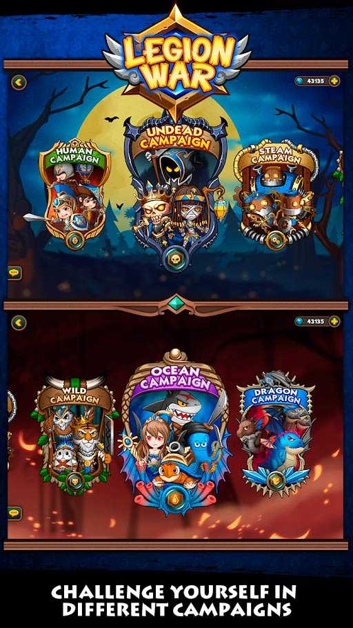 - несколько режимов игры, включая кампании и отдельные битвы;
