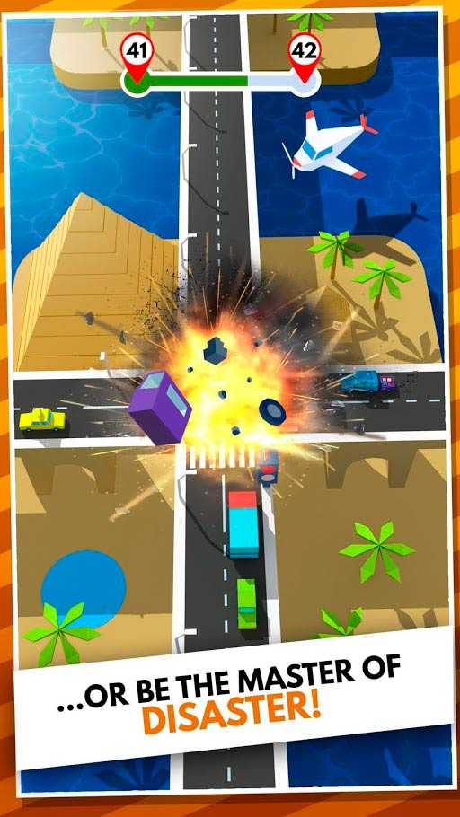 В игре есть несколько разных бустеров, включая ускорение машин и особый RAGE MODE с масштабными разрушениями мешающих автомобилей. Как далеко вы сможете продвинуться в этой увлекательной игре?