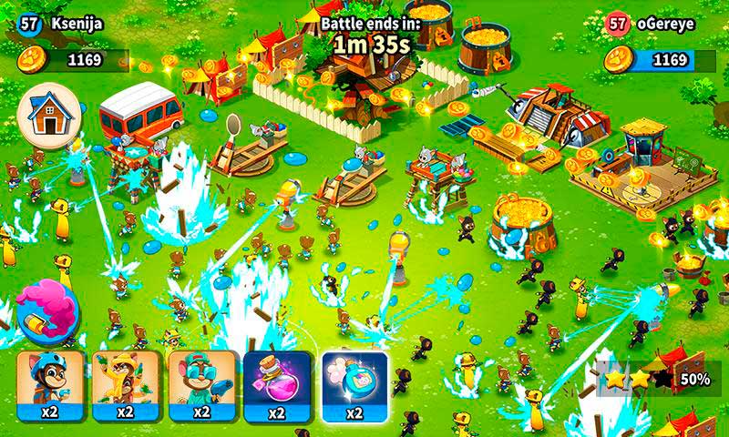 Не забывайте регулярно укреплять свой лагерь, ведь с каждой секундой враг становится все сильнее. Совершенствуйте технологии защиты, ставьте больше водонапорных башен и смывайте своих соперников с победного трона. За успешное прохождение уровней вам будут выдаваться ценные монеты. На них вы сможете приобрести новые виды оборонительных сооружений, высокотехнологичные заводы и прочие улучшения для вашей базы. Обеспечивайте достойную защиту лагеря, и вы будете вознаграждены по заслугам.