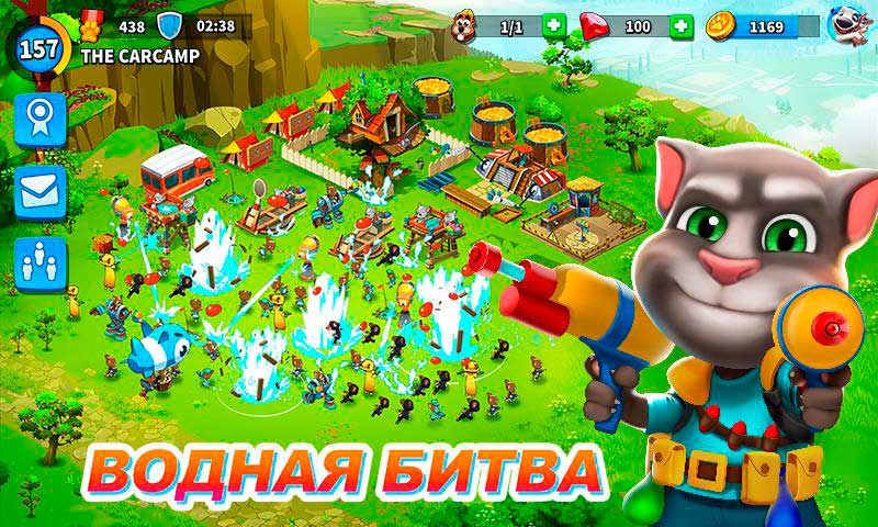 В приложении Говорящий Том: водная битва для начала вам нужно обустроить лагерь и хорошенько его укрепить. Далее вашей основной задачей будет поливание водой кошек из противоположного лагеря. Разрабатывайте свою уникальную стратегию и с головой погружайтесь в это водное безумие. Приглашайте в игру друзей и устраивайте с ними веселые соревнования. Из этой игры сухим не выйдет никто.