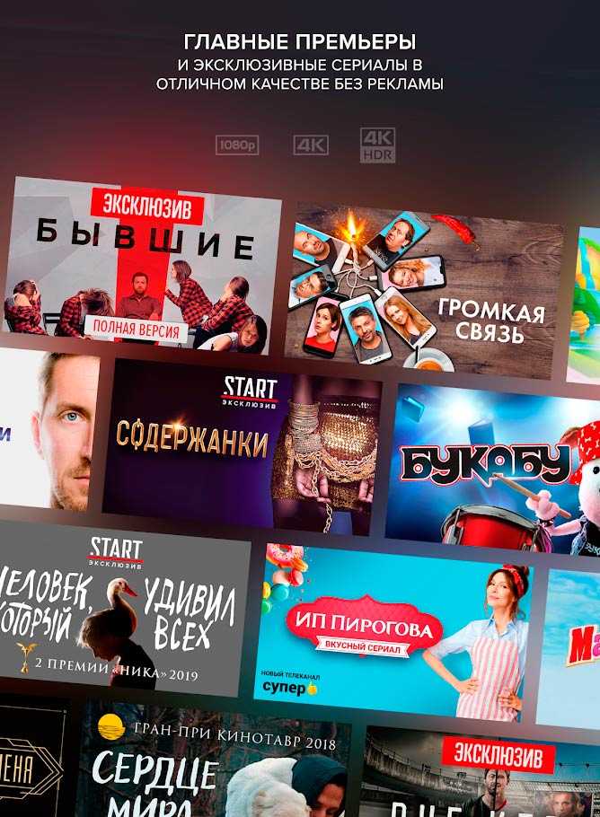 START – это большой сборник лучших российских фильмов и сериалов. С таким приложением смотреть все самое интересное в мире российского телевидения и кино можно в любом уголке планеты, где есть доступ к интернету. Каждый пользователь здесь имеет свой профиль, учитывающий его предпочтения. Для юных зрителей разработан специальный вариант профиля, ограничивающий им доступ к контенту для взрослой аудитории. По подписке весь контент доступен без рекламы и дополнительных выплат, открываются эксклюзивные версии и другие интересные материалы, качество повышается до максимального и многое другое.