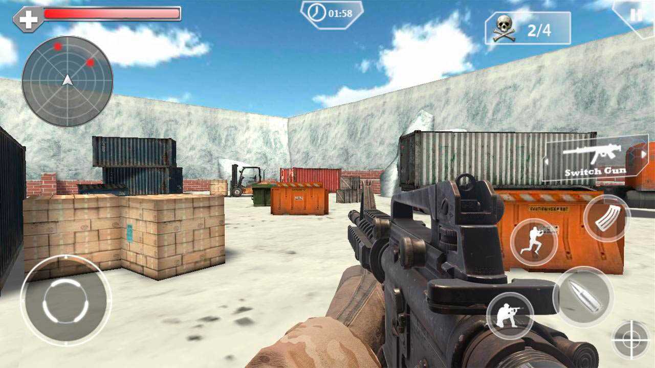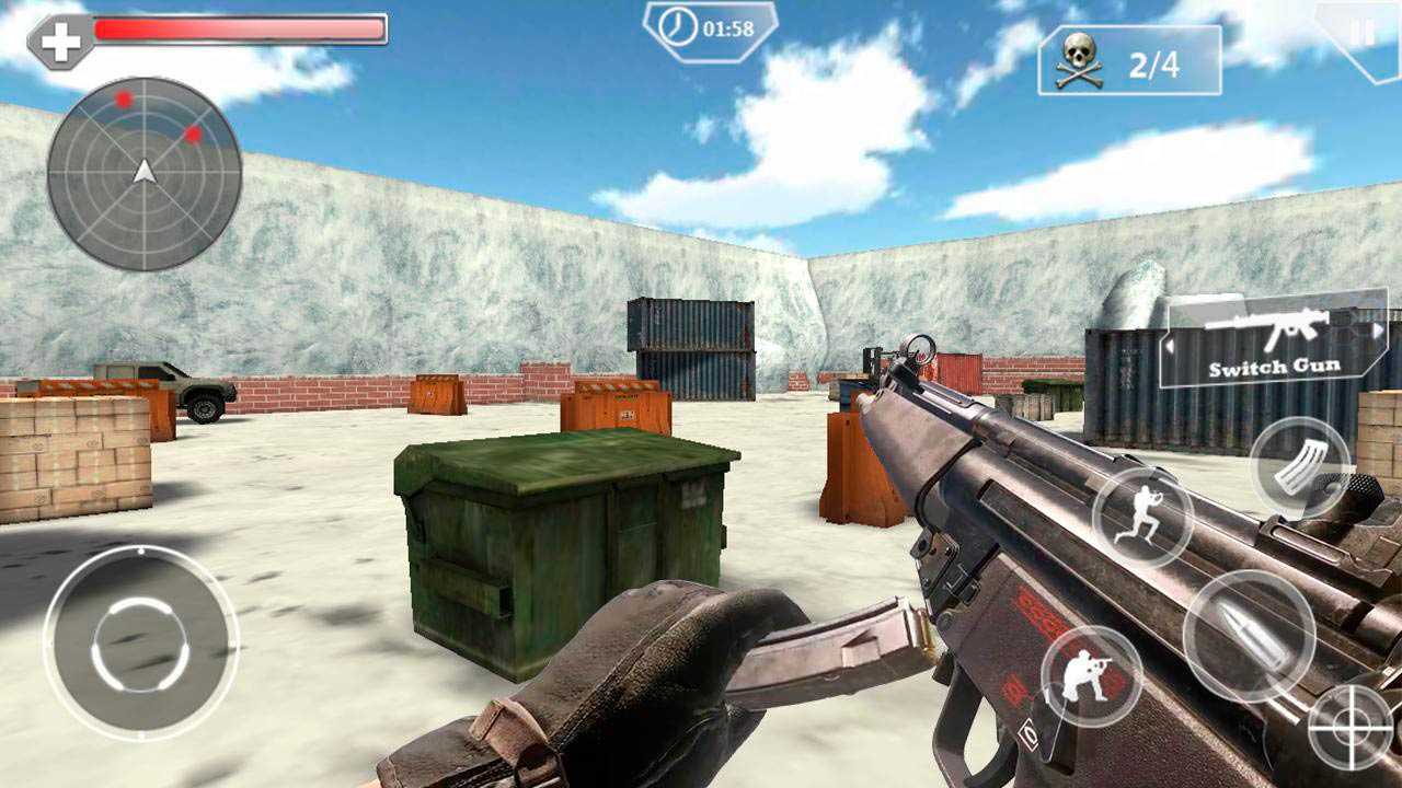 Поможет ему в этом лишь верное оружие, всегда готовое положить толпы врагов. Управление движением осуществляется джойстиком, что на экране слева, в правой части экрана располагается прицел. Есть командный режим и режим скрытности. За прохождение миссий вы получите ценные монеты, на которые можно купить новое оружие или улучшить старое.Особенности игры:
