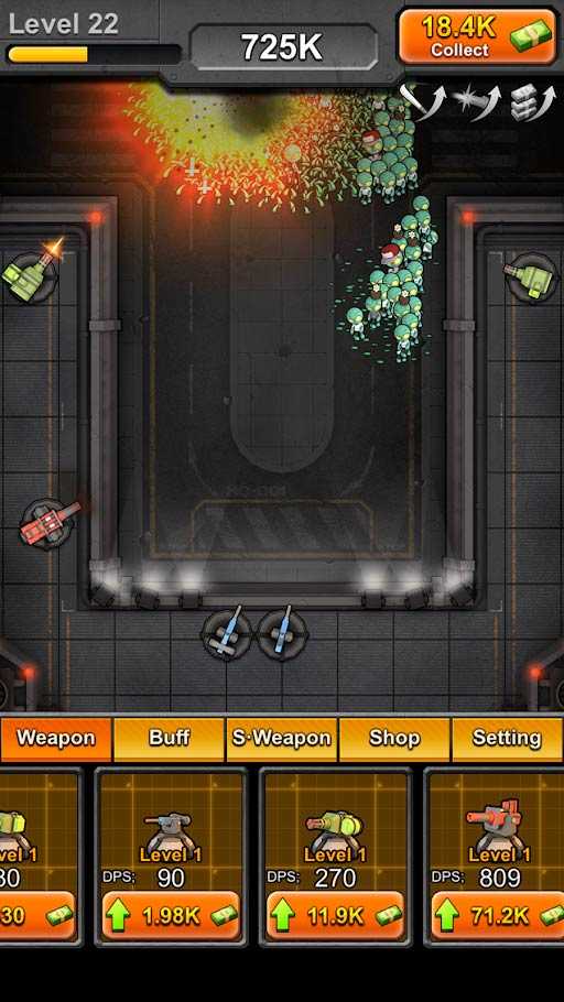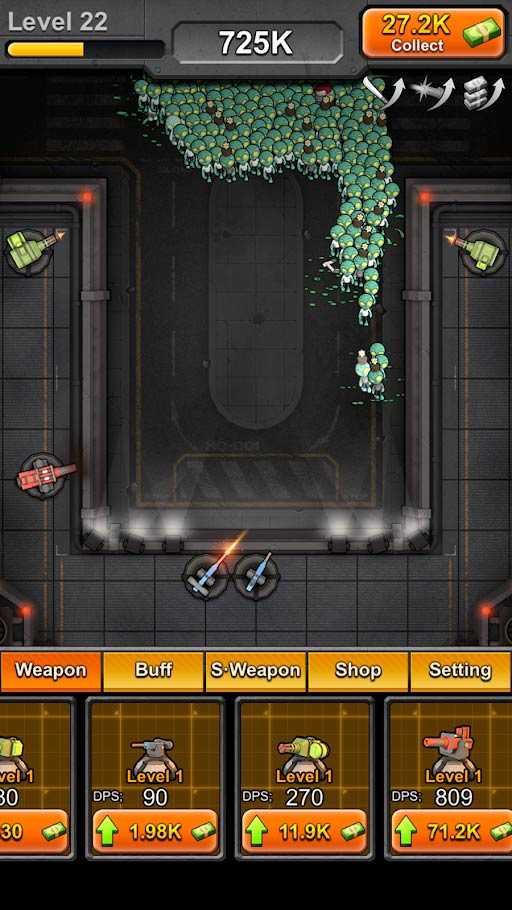 Здесь вам не нужно бегать от кровожадных тварей по огромным локациям, стараясь спасти свою жизнь – они движутся на вас одним плотным потоком, и выживание зависит лишь от верно расставленных орудий и их использования. Набирайте очки и приобретайте новое более сильное оружие, готовое противостоять все увеличивающемуся количеству идущих на вас зомби.Особенности игры: