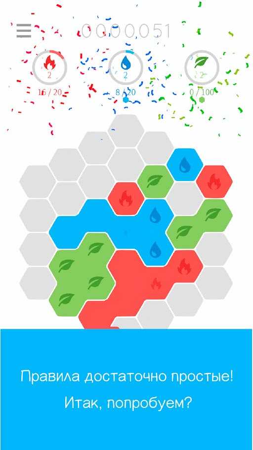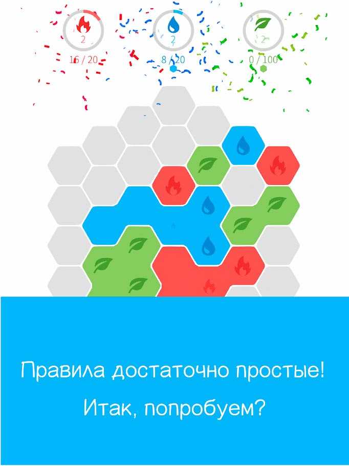 Для продолжения игры и набора большего количества очков элементы следует комбинировать определенным образом. Играть тут очень легко – нужно пальцем двигать клетки с элементами, периодически нажимая на панель для изменения порядка деталей. Когда нужное число элементов будет набрано, откроется следующий уровень.