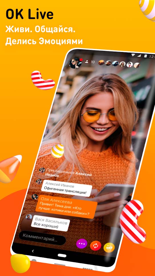 OK Live – это популярное современное приложение для ведения видеотрансляций. Просматривайте самые знаменитые эфиры и отслеживайте все интересное. Теперь яркие моменты вашей жизни смогут увидеть все желающие, если вы запишете их с помощью данной программы. Масса фильтров и объемных масок позволит сделать трансляцию очень забавной. Подбирайте любимые песни и создавайте настоящие видео шедевры. С удобным интуитивно понятным интерфейсом справится любой начинающий пользователь.