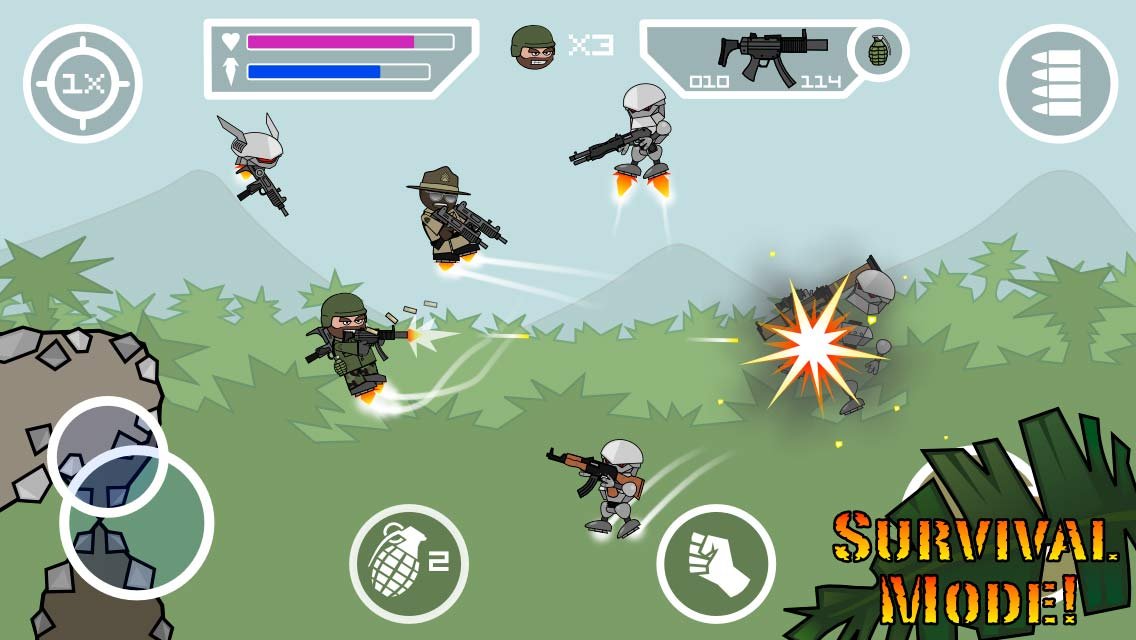 С приложением Doodle Army 2 : Mini Militia вы отлично повоюете и станете настоящим лидером. Копите энергию и отправляйтесь в очередной бой, побеждая все более сильных противников. Если вдруг у вас закончатся патроны – не отчаивайтесь, ведь в этой игре всегда можно врезать вражине кулаком. Легкая и забавная атмосфера позволяет отлично отдохнуть за такой игрой после трудного дня и просто расслабиться. Отправляйтесь в увлекательное путешествие по занимательному виртуальному миру и участвуйте в великих сражениях.