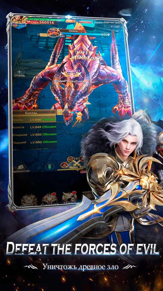 The Last Knight – это новая ролевая игра на мобильные устройства в стиле фэнтези. Здесь вы будете управлять легендарным героем, сражающимся в древнейшем волшебном мире с силами тьмы. Раскрывайте огромный потенциал своего воина, улучшайте его навыки и создавайте новые оружие и броню. Выполняйте различные квесты, сражайтесь с чудовищами и получайте отличные награды. Общайтесь с другими игроками, объединяйтесь с ними и вместе побеждайте сильнейших монстров.- красочный волшебный мир;