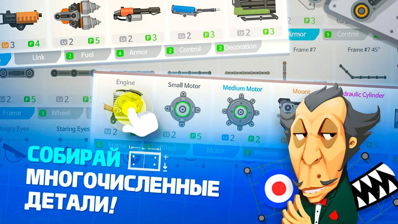В игре полно особенностей, которые помогут сделать игру неповторимой, а ваше время в ней уникальным. Собирайте танк из огромного количества разных объектов и элементов и пользуйтесь экспериментами, чтобы собрать его лучшим. Этот танк должен полностью говорить о вашем индивидуальном характере, чтобы другие бойцы знали, с кем имеют дело. Соревнуйтесь с игроками по всему миру и открывайте новые награды за сокрушительные громкие победы. Каждый день будут доступны новые задания, которые приносят дополнительных монеток. Больше сотни деталей можно будет использовать при создании собственного танка.