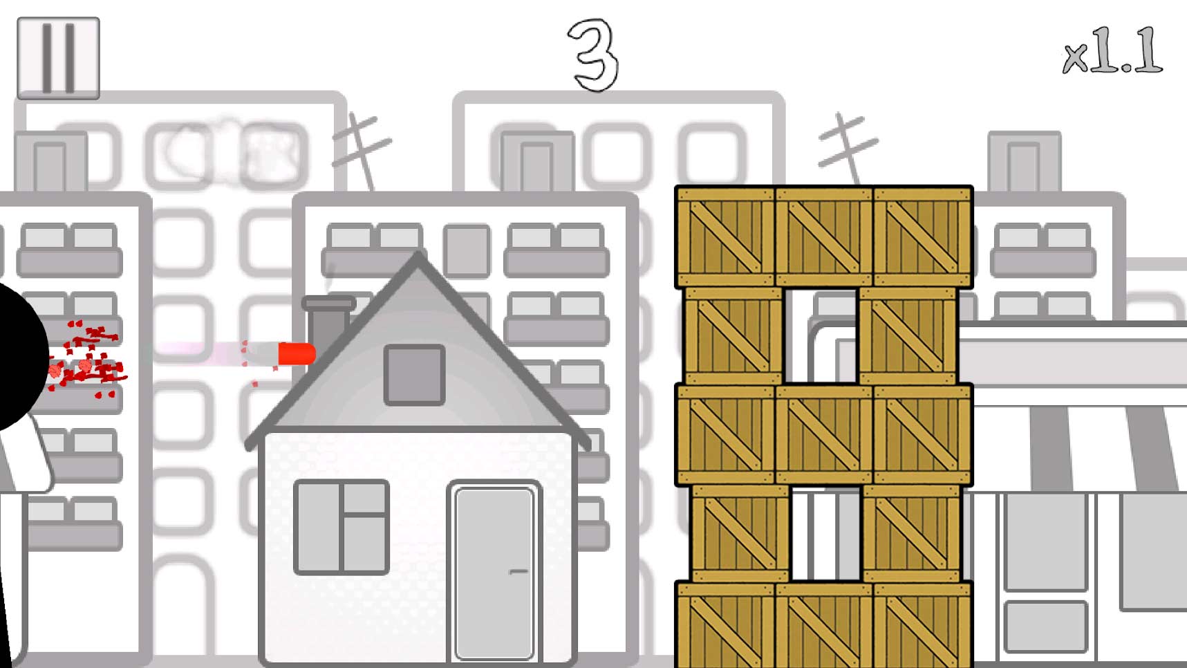 Stickman Insane Bullet – это необычный экшен для мобильных гаджетов, в котором вы сможете управлять летящей на огромной скорости пулей. Убивайте вражеских стикмэнов и не попадайтесь под их огонь. Будьте внимательны, ведь на пути встретятся не только преследующие вас злодеи, но и мирные жители, которые не должны пострадать. Управлять пулей можно лишь при помощи движений одного пальца, что весьма упрощает игровой процесс и позволяет расслабиться за интересной игрой.