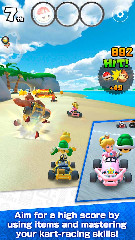 Mario Kart Tour – это первый перенос знаменитой игровой серии Mario Kart на мобильные платформы. Здесь вы сядете за руль удивительной машинки, которая способна гонять не только по земле, но также и по воде, и по воздуху. В игре собраны самые популярные трассы франшизы и добавлены новые. Доступ к некоторым персонажам и локациям открывается только после выполнения определенных заданий. Выбирайте своего героя и отправляйтесь вместе с ним навстречу приключениям.