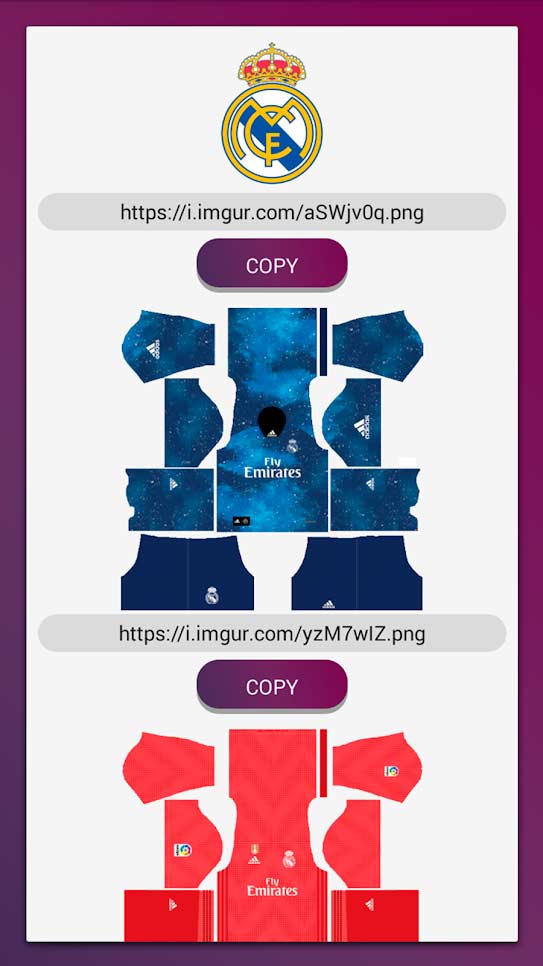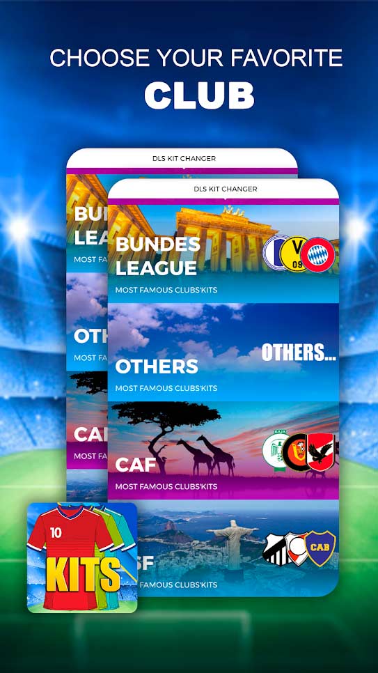 Dream League Kits Soccer 2020 – это отличное приложение на мобильный телефон для всех, кто увлекается футболом и хочет иметь комплект снаряжения и одежды от популярных футбольных клубов. Здесь собрана форма большинства знаменитейших клубов планеты, а также мало известных команд. Просто открывайте приложение, выбирайте желанный клуб и копируйте ссылку на комплект его формы или логотип клуба. Создайте команду своей мечты по всем правилам и традициям.- большой выбор экипировки;