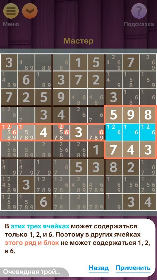 Когда сможете скачать Судоку на андроид начинайте изучать абсолютно новые методы игры и стратегии, чтобы пользоваться ими в совершенстве. Вам обязательно понравится классический геймплей и интерфейс, которым удобно управлять. Вся игровая система создана для облегченного понимания даже новичками в играх такого жанра. Когда вам попадется особенно сложная головоломка, можете попробовать использовать одну из подсказок и с ее помощью уже узнать пути выходы из этого. В правилах головоломки есть примеры в виде анимации и довольно понятные картинки, так что сложностей с обучением у игрока точно не появится.