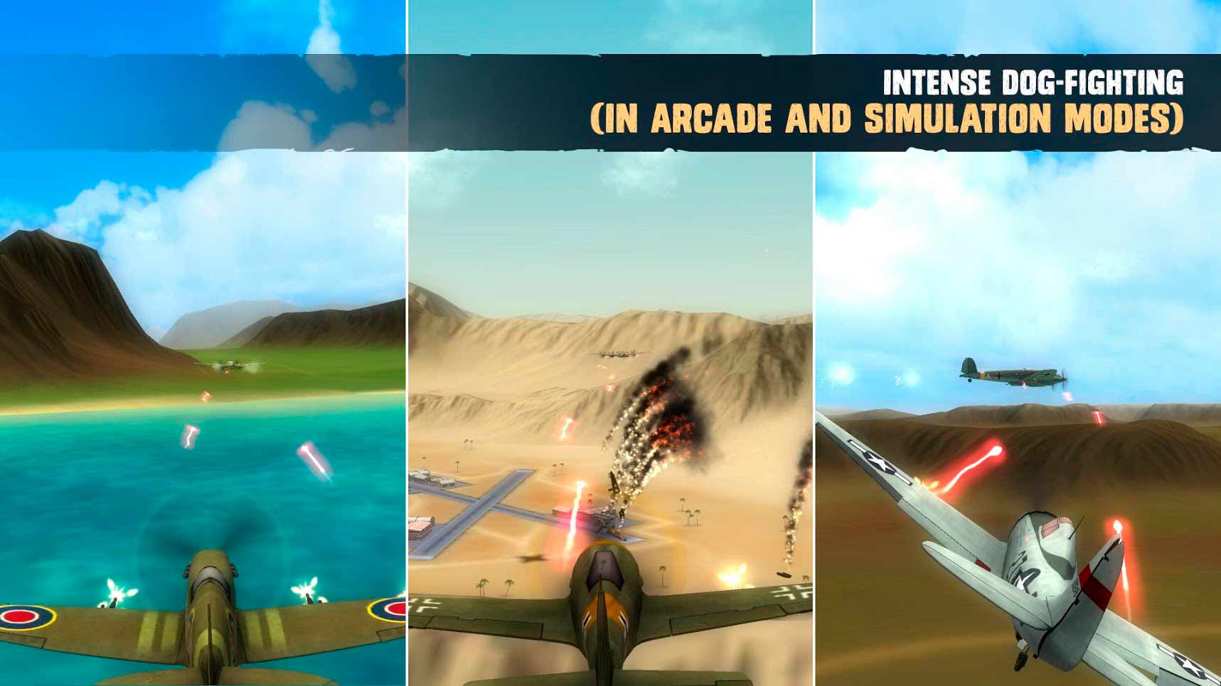 War Dogs: Air Combat Flight Simulator WW II – это динамичные воздушные бои времен Второй мировой войны с отличными спецэффектами и увлекательной сюжетной линией, где вы сможете побывать в шкуре настоящего профессионального летчика той эпохи. Рассекайте на могучих истребителях, бомбардировщиках, торпедоносцах и других небесных кораблях, сражая врага точными попаданиями в цель. Летите к своей победе на железных крыльях войны.- масштабные воздушные бои;