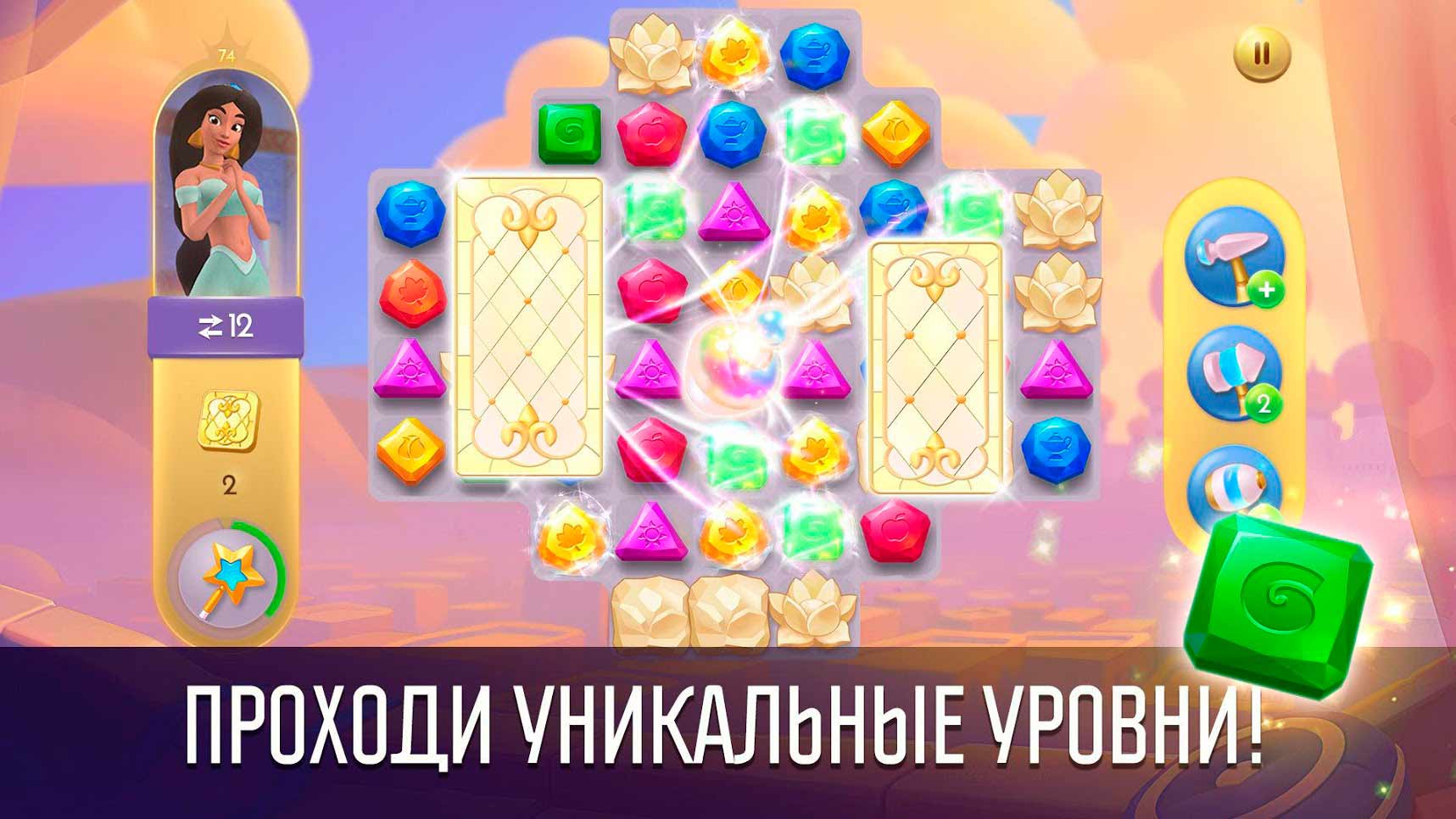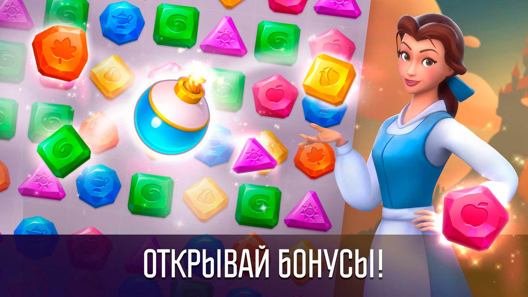 Принцесса Disney Магия загадок – это красивейшее приложение с классической механикой «три в ряд», которое особо понравится женской половине игроков. Здесь вы будете исследовать удивительный сказочный мир вместе с прекраснейшими диснеевскими принцессами. Недавно волшебная буря разрушила их королевства, и вам нужно помочь девушкам отстроить их родные дома. Разгадывайте занимательные загадки, собирайте подсказки, ценные ресурсы и просто отлично проводите время в игре.- увлекательная история;