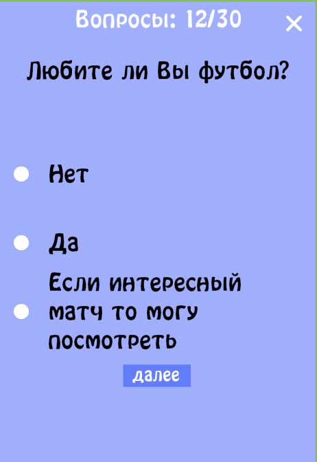Тест на имя – это интересное приложение для мобильных гаджетов, с помощью которого вы сможете узнать, какое имя вам наиболее подходит. Здесь собраны популярные современные имена, сильные психологически с различных сторон. Многим людям вопросы покажутся занятными, а полученный результат заставит задуматься. Отвечайте на тест вместе с друзьями, и попробуйте узнать, какое же имя выдаст вам система после анализа всех ответов. С такой увлекательной программой вы узнаете много нового о именах.- несколько десятков вопросов;