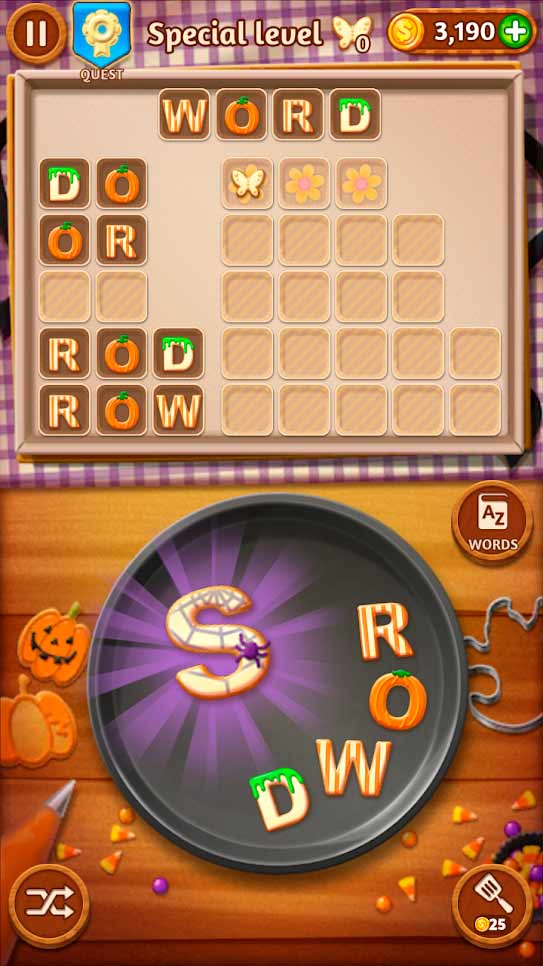 Word Cookies! – это новая увлекательная словесная игра, с которой вы сможете отлично развлечься и натренировать интеллект. Проверьте свои навыки правописания и пополните словарный запас, проходя многочисленные испытания. Раскладывайте печенья на противне в алфавитном порядке и формируйте из них различные слова. Заполняйте банку с печеньем найденными словами и получайте ценные награды. Отличная графика и забавная атмосфера делают игровой процесс приятным и затягивающим.
