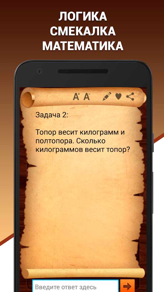 Эврика! Логические Задачи – это сборник логических задачек для всех любителей поломать голову. Здесь собрана шикарная коллекция головоломок, в которые моментально втягиваешься, и не хочется от них отрываться. Для игры не требуется каких-либо особых знаний – достаточно понимания общеизвестных фактов и совсем немного смекалки. Однако, по мере прохождения заданий придется постараться, чтобы решить очередную загадку, так что будьте готовы к сложностям.