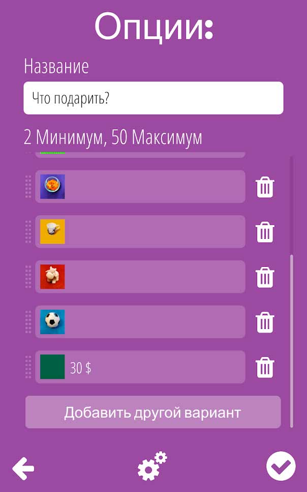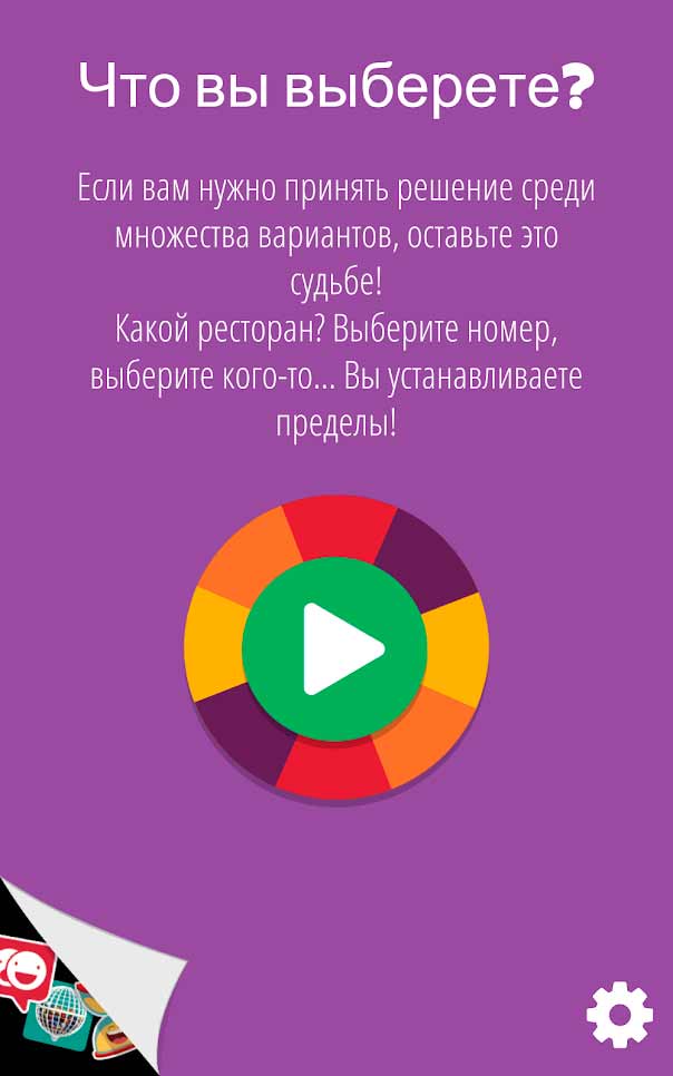 Рулетка судьбы – это уникальное приложение для мобильных устройств, в котором вы сможете создать собственную рулетку для удобства выбора или в качестве просто занимательного развлечения. В жизни зачастую случаются ситуации, когда выбрать из нескольких вариантов оказывается затруднительно. Именно для таких случаев отлично подходит данная программа, перекладывая выбор на случайность. Здесь вы можете даже задать изображения на колесе с вариантами выбора, чтобы проще было ориентироваться.