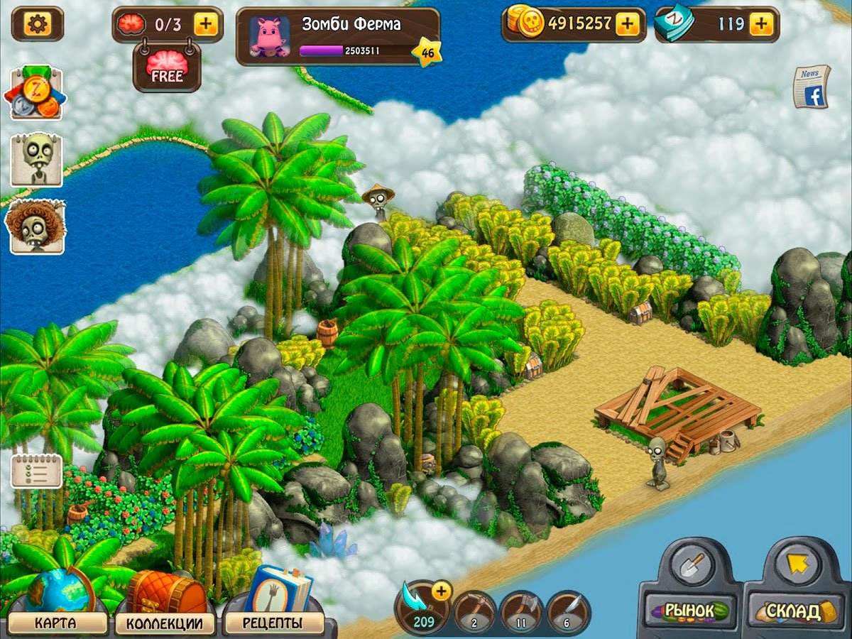 В игре Зомби Ферма можно выращивать уникальные растения, варить зелья и добывать ресурсы. Вы сможете построить целый город, управляя зомби-работниками, которые помогут расчистить ваш остров и построить различные здания. Расширяйте ваши владения и украшайте остров различными сооружениями, тогда ваш дом станет гораздо уютнее.