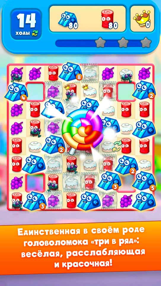 Сахарные Герои – это новая забавная игра для мобильных телефонов, в которой простая механика идеально сочетается с колоритными персонажами. Собирайте вкуснейшие сладости, не попадайтесь на препятствия и получайте ценные призы. Участвуйте в захватывающих соревнованиях и побеждайте игроков со всего мира. Скрасьте свое свободное время этим удивительным приложением и вы явно не пожалеете. Разнообразные уровни и задания придутся по вкусу всем любителям занимательного геймплея и красивой графики.