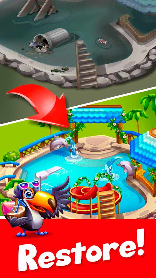 Tropic Trouble Match 3 Builder – это захватывающее тропическое приключение, в котором вы очутитесь на таинственном острове, полном сокровищ и опасностей. По сюжету вы с семьей плыли на лодке и попали в шторм. Вас занесло на неизведанный остров, на который до этого не ступала нога человека. Занимайтесь постройкой жилища, поисками еды и другими необходимыми для выживания мероприятиями. Разгадывайте многочисленные загадки и попытайтесь узнать всю правду об этом острове.