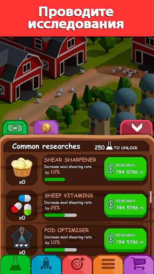 Есть огромное количество обусловленных причин, из-за которых вы обязательно должны скачать Tiny Sheep на андроид и принять участие в этой увлекательной игре. Весь игровой процесс построен в классическом простом стиле и будет доступен для детей. Взрослым тоже станет интересно попробовать себя в виде замечательного и успешного фермера, тем более при этом не придется напрягаться, а даже наоборот можно будет лихо расслабиться. Кликайте по разнообразным объектам этого ранчо и животным, чтобы извлекать огромные деньги, а потом на них прокачивать здания. Вы можете стать крутым магнатом и покорить всех участников этого игрового процесса своими достижениями.Фермерский забавный кликер