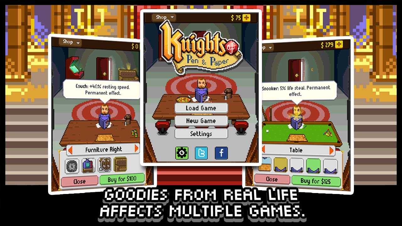 Knights of Pen and Paper +1 – это забавная ролевая игра для мобильных устройств, выполненная в атмосферной ретро графике. Вас ждут многочисленные подземелья, полные ловушек, монстров и сокровищ. Издание «+1» включает расширенную кампанию, новую систему атак и уникальное место для выбора героев – таверну. Классическая вселенная с битвами на мечах, огромными магическими возможностями и удивительными сказочными существами придется по вкусу всем любителям современных ролевых игр.- множество увлекательных заданий;