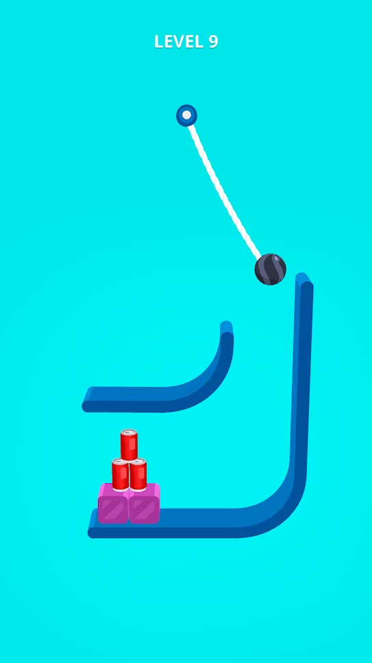 Rope Slash – это простая и затягивающая игра для мобильных устройств, в которой нужно сбивать шаром банки. Шар привязан на веревку, и вся сложность и интерес игрового процесса заключается в своевременном разрезании этой веревки. Подгадайте момент и отпустите шар, а дальше просто наблюдайте за действием стандартных физических сил, действие которых передано в этом приложении крайне реалистично. Многочисленные, регулярно обновляющиеся уровни будут интересны всем любителям хороших головоломок.
